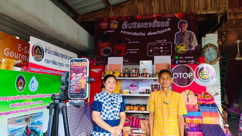 หัวข้อ :: \"ตลาดนัดท้องถิ่นออนไลน์\" ผลิตภัณฑ์สินค้า Otop น้ำพริกดักแด้ อาหารทางเลือกใหม่ เพื่อสุขภาพ ตลาดนัดท้องถิ่นออนไลน์เครือข่ายของดีบ้านเรา เที่ยวท้องถิ่น ตำบลโคกสว่าง อำเภอหนองพอก จังหวัดร้อยเอ็ด