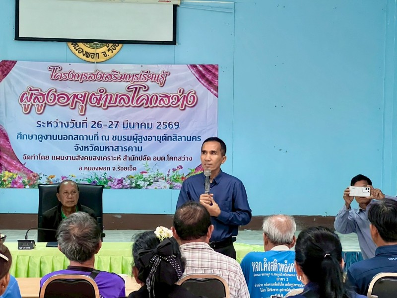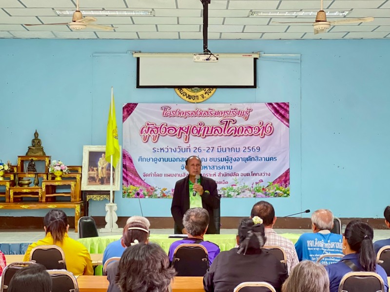 วันที่ 26 - 27 มีนาคม 2569 องค์การบริหารส่วนตำบลโคกสว่าง ได้จัดโครงการส่งเสริมการเรียนรู้ผู้สูงอายุตำบลโคกสว่าง และศึกษาดูงานนอกสถานที่ ณ ชมรมผู้สูงอายุตักสิลานคร จังหวัดมหาสารคาม โดยนายพล พรรคพล รองนายกองค์การบริหารส่วนตำบลโคกสว่าง เป็นประธานในพิธีเปิด ร่วมกับ นายสมศักดิ์ อยู่ไพร ประธานสภาองค์การบริหารส่วนตำบลโคกสว่าง นายศรีศักดิ์ เวียงนนท์ ปลัดองค์การบริหารส่วนตำบลโคกสว่าง พร้อมด้วย คณะผู้บริหาร และสมาชิกสภาฯ ข้าราชการ และพนักงานจ้าง จัดทำโดย แผนงานสังคมสงเคราะห์ สำนักปลัด องค์การบริหารส่วนตำบลโคกสว่าง